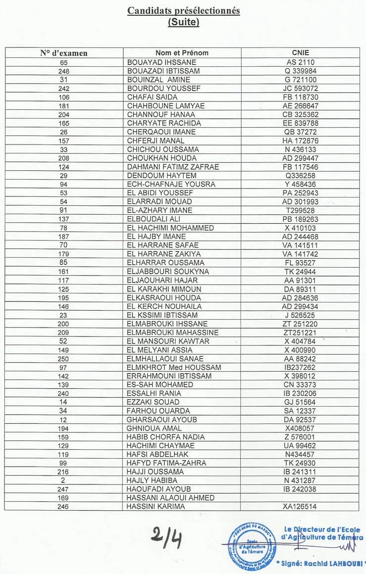 2- لوائح المدعووين مستوى التقني متخصص Techniciens Spécialisés