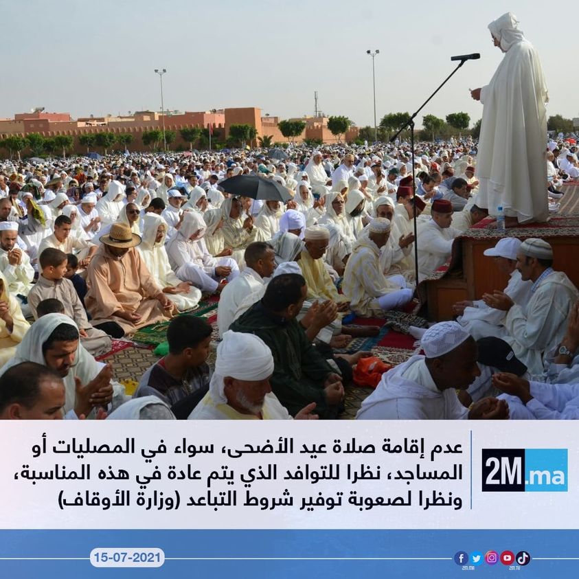 أعلنت وزارة الأوقاف والشؤون الإسلامية أنه تقرر في ظروف التدابير الاحترازية من عدوى الوباء، عدم إقامة صلاة عيد الأضحى، سواء في المصليات أو المساجد، نظرا للتوافد الذي يتم عادة في هذه المناسبة، ونظرا لصعوبة توفير شروط التباعد.وأوضحت الوزارة في بلاغ لها اليوم الخميس، أنه “حيث إن المساجد مفتوحة، والحمد لله، للصلوات الخمس وصلاة الجمعة، فإن هذا الإجراء بخصوص صلاة العيد يتعلق بسنة يجوز القيام بها داخل المنازل”.